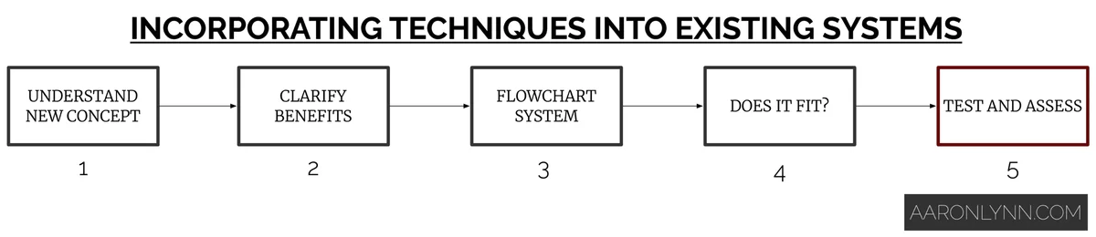 This is a simple model for incorporating a new app, idea or technique into your existing system and workflows.